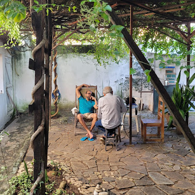 Fui reencontrar o Baldomiro em seu ateliê numa daquelas ruas transversais à Avenida Dorival Caymmi, no bairro de Itapuã, em Salvador, debaixo de um pergolado formado por um belo pé de Ora-Pro-Nóbis, aquela mesma planta que hoje serve de remédio para “quase todas as doenças”, segundo os vendedores televisivos. Saí de lá com uma mudinha da planta milagrosa e já replantei no meu jardim. Neste reencontro pude constatar que Baldomiro continua firme no seu caminhar com sua arte ligada à natureza. Ele nasceu numa fazenda na localidade de Campo Novo, distrito de Santo Estêvão, interior da Bahia, no dia vinte e sete de junho de 1964. Seu pai José Pereira da Costa é mestre de obras e sua mãe d. Marly da Cruz Costa dona de casa. Seu pai migrou em busca de novas oportunidades para Nova Osasco, no interior de São Paulo com toda a família e ficaram por lá durante quinze anos. Disse Baldomiro que durante a sua infância nesta nova moradia lembra do barulho de grandes máquinas com pneus imensos, “maiores que um homem em pé”, que faziam a terraplanagem de uma extensa área. Perto de sua casa havia muitas jabuticabeiras e que ele e seus amigos iam saborear os frutos. Outra coisa que lhe marcou foi a chegada do Neil Armstrong à Lua que ocorreu em 20 de julho de 1969, durante a missão Apollo 11, da NASA e a Copa de 70 . Mas, a movimentação de terra para a criação de um novo condomínio de luxo próximo à sua residência talvez seja a lembrança mais forte. “O cheiro da terra me fez lembrar o interior de Santo Estêvão onde nasci. Tive uma infância bem na rua, brincando nesta grande área que se chamava Casa do Prefeito, e no entorno tinham muitas jabuticabeiras que eram antigas e carregavam bastante, além de um lago tipo pesque pague. Havia muitas outras árvores frutíferas no entorno. Eu e meus colegas nos divertíamos muito na rua e neste ambiente “.