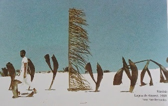 Lembrou também que estes seus gestos na praia remetem aos escritos feitos por nos poemas que escrevia com um bastão para Jesus Cristo, no seu encontro com Madalena. Também as volutas espirais, os universos em expansão, zig-zags, círculos perfeitos, notas musicais, desenhos em escala monumental. Portanto, o Baldomiro viaja como um poeta da forma com seus traços retos e curvos.