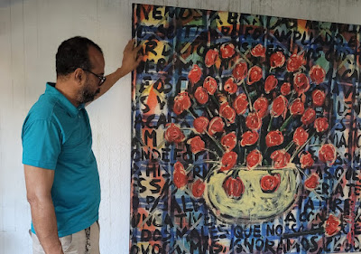 A arte de Baldomiro tem uma integração perfeita com a natureza interagindo e recolhendo materiais para suas pinturas e esculturas.  São palhas de coqueiros e de outras palmeiras, fibras, galhos, folhas secas de bananeiras e até de amendoeiras e outros elementos para criar suas obras tridimensionais. Também utiliza objetos industrializados como  tecidos e plásticos recicláveis ou não para realizar suas intervenções introduzindo-os em ambientes naturais, e em seguida faz os registros fotográficos de sua presença criadora. Ele é   graduado em Licenciatura de Desenho e Plástica (1991), e é Mestre em Artes Visuais (2011/2013) pela Escola de Belas Artes, da Universidade Federal da Bahia. Lembro que estava na redação do jornal A Tarde, na Avenida Tancredo Neves, em Salvador, no ano de 2003, portanto já se foram vinte e dois anos, quando apareceu o Baldomiro com as fotos de umas intervenções que fizera na praia de Placaford, em Salvador. Eram grandes círculos que fez na areia da praia lembrando as famosas inscrições que existem no Peru, visíveis até através dos satélites as chamadas de Linhas de Nazca,  um conjunto de antigos geoglifos localizados no deserto de Nazca, e que até hoje intrigam os cientistas. Também no Brasil, mas precisamente no estado do Acre existem mais de oitocentos sítios de geoglifos, que são grandes estruturas de terra escavadas, com formas geométricas – como quadrados, círculos e retângulos – feitas por povos indígenas há mais de mil anos.