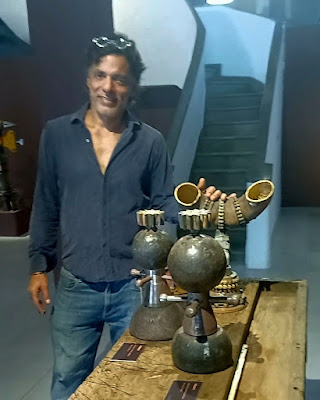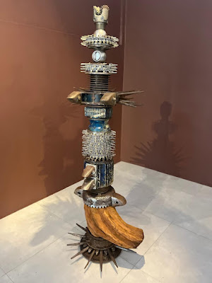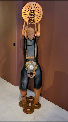 Ao lado de José Ignácio pude sentir que ele se emociona quando começa a falar diante de cada uma de suas obras. Tinha estado com o escultor em junho de 2024 quando estava começando a montar a sua Iemanjá, agora exposta com toda sua exuberância, feita de engrenagens, pedra e madeira. Vi seus esboços e sua busca por formas e encaixes de suas