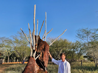 Quando lhe indaguei como as pessoas o recebiam ao começar a criar uma escultura num povoado da zona rural disse que “não era um estranho naqueles lugares porque eu sempre passava por lá e ia conversando com os moradores. Lembro que certa vez uma senhora reclamou que seu marido tinha várias semanas sem ir para a feira da cidade. Ouvi a sua história e fiquei sabendo que o marido dela ficava na porta de sua casa tomando conta da escultura para ninguém mexer. Foi aí que falei que não precisava ele ficar tomando conta da obra.”