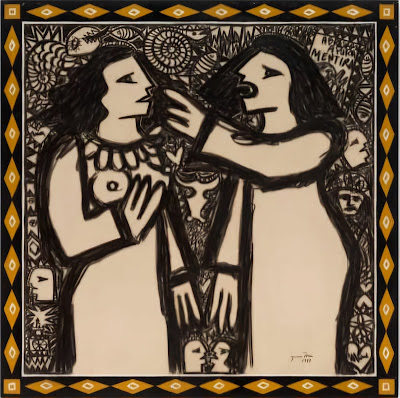 Aí a figuração de Juraci Dórea é feita com carvão e mostra conflitos, também muito comum nas historinhas dos livretos de cordel que conta conflitos religiosos e de bandidos no sertão a exemplo da A Peleja do Cangaceiro contra a Volante, etc.