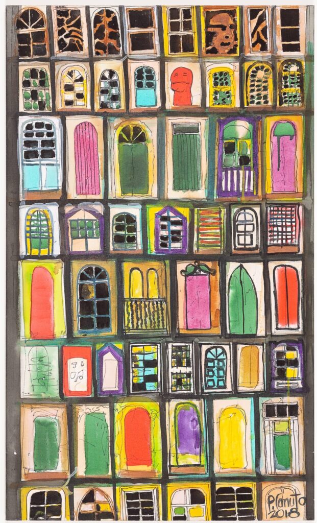 Em suas obras, Paulo Canuto deslocou continuamente seu olhar sobre o espaço urbano — ora explorando em telas as fachadas, portas e janelas; ora captando em desenhos pessoas passando, dançando, se exercitando; ora transformando objetos como móveis e bicicletas em esculturas — compondo um repertório que se expande em múltiplas expressões de arte. Sua inspiração está nas cidades, com ênfase em Salvador, onde o artista plástico sergipano vive desde os 5 anos de idade. “Sempre produzi com um olhar investigativo sobre o ambiente urbano, com o movimento contínuo de seus ocupantes, o design dos meios de transporte, sua arquitetura e seus elementos históricos”, declara. Os trabalhos que compõem a exposição incluem telas com pintura em tinta acrílica; aerografias sobre papel; desenhos em aquarela; dobraduras com fios de cobre e pinturas em camisas.