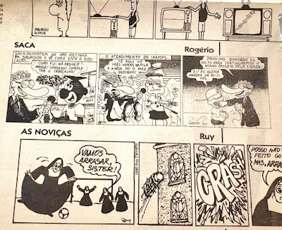 Durante um evento que foi realizado no Teatro Castro Alves comandado pelo jornalista Hermano Henning que trabalhava no SBT entregando o Troféu Imprensa local. Ruy Carvalho o procurou e ficou acertado para ele ir à televisão no dia seguinte e procurar Júnia Melo ou Jorge Ramos. Assim o fez, e o Hermano Henning ao chegar na emissora passou direto nem o cumprimentou. Ele o abordou e disse conforme acertamos estou aqui para falar sobre o trabalho que faço, foi aí que o Hermano Henning lembrou. Disse a Ruy Carvalho que ia entrevistar no programa Opinião o grande técnico Aimoré Moreira no dia seguinte. Foi assim que na hora da entrevista passou a fazer os desenhos do Aimoré Moreira e ficou na televisão até o ano de 1981. Paralelamente conseguiu publicar umas tiras de As Noviças no Lazer & Informação e ilustrações no Caderno Fanzine . Ele já tinha experiência de fazer porque juntamente com Carlos Rezende fazia um Fanzine chamado Vilões e mimeografava e distribuía gratuitamente nos eventos. As tiras que publicava As Noviças saíram até que certo dia recebeu a notícia que o arcebispo d. Lucas Moreira Neves tinha reclamado do conteúdo das tiras. O redator Chefe dr. Jorge Calmon o chamou no gabinete relatou sobre a reclamação do arcebispo e ele teve que escolher outro personagem.